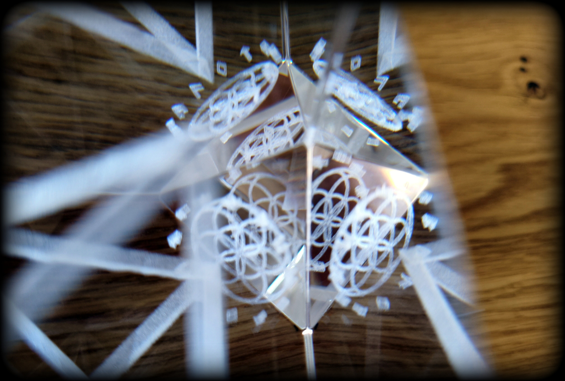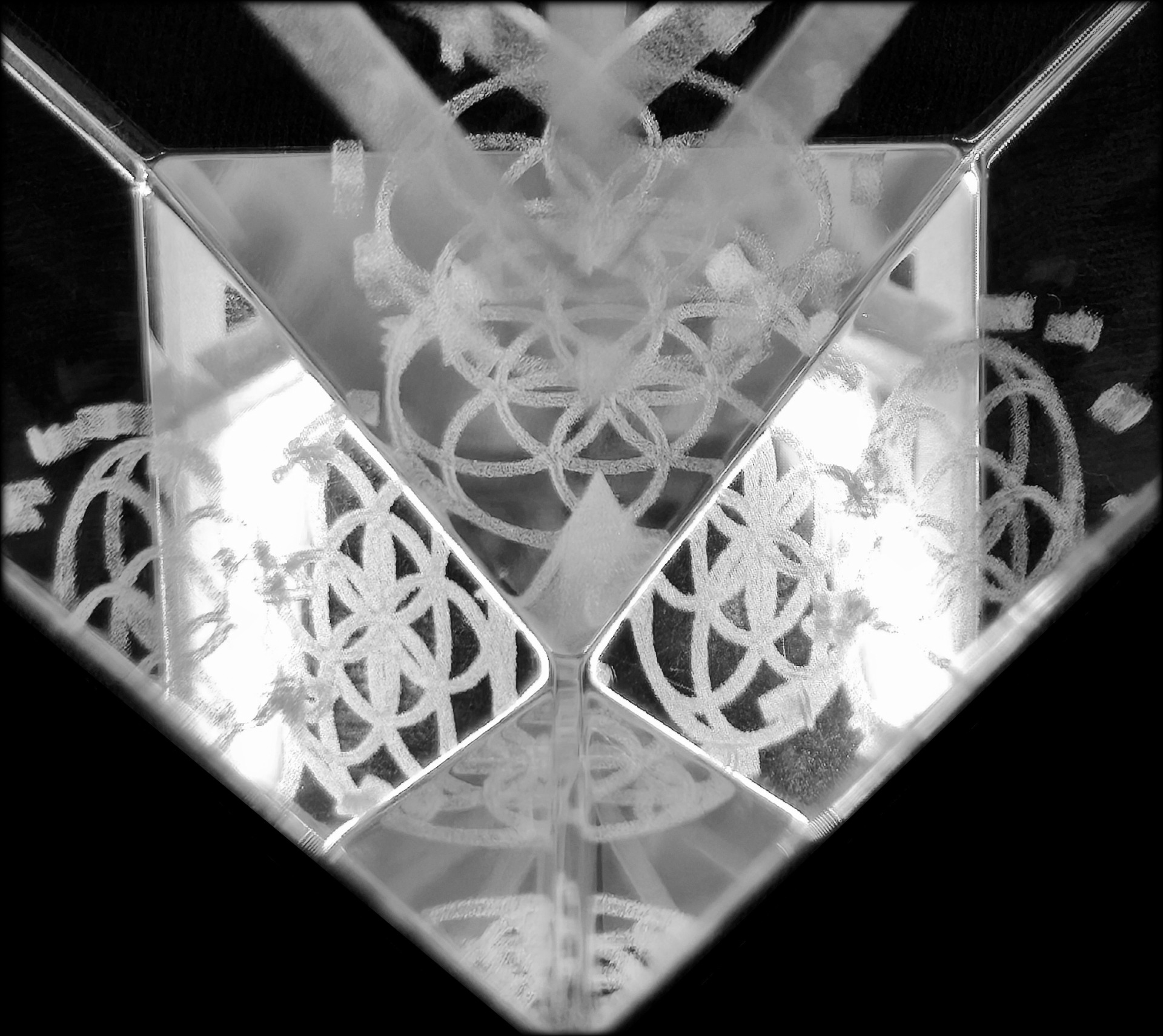Díky superčistému křemíku vzniká mnoho odrazových úhlů a ploch. Je to úžasná hra světla a odrazů. Při různých úhlech pohledu vznikají různé obrazy. Na obr. je vidět jak květ života znásobuje sám sebe.